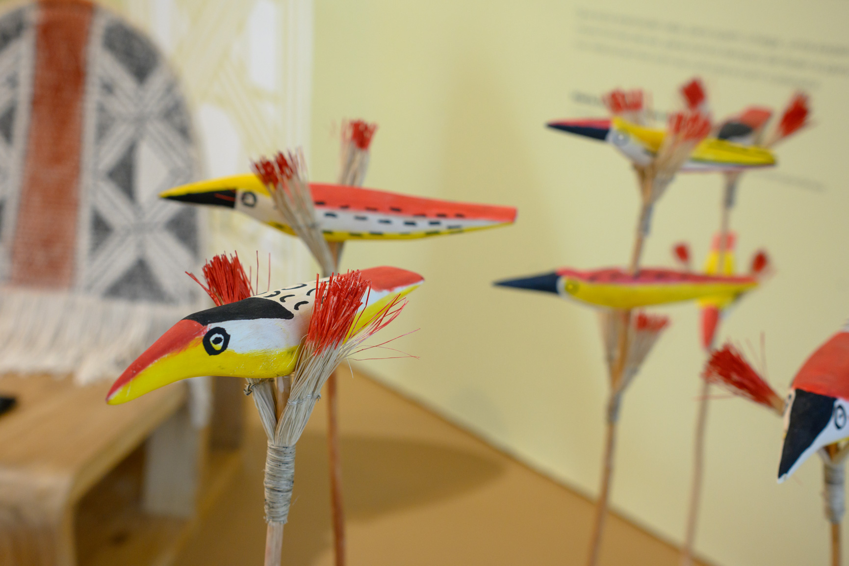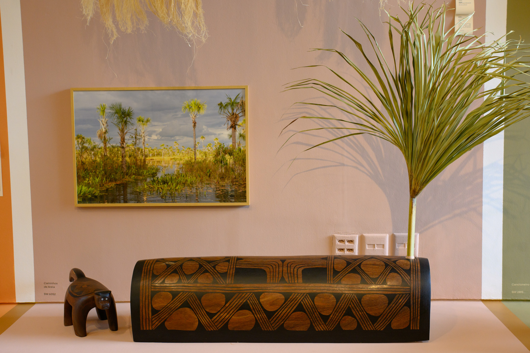 A exposição se organiza em dois núcleos curatoriais que se entrelaçam. O Núcleo Tradicional, com curadoria do artista Kulikyrda Mehinaku, apresenta a riqueza dos saberes ancestrais de seu povo em sua forma mais integral e autêntica. São obras que nascem da relação íntima entre território, memória e espiritualidade, expressando uma cultura viva que pulsa no cotidiano.