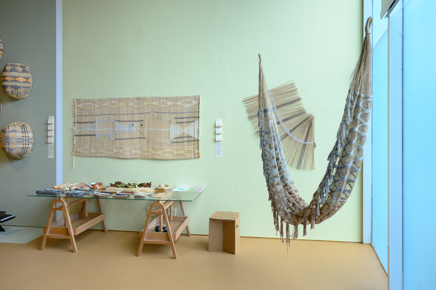 As peças tradicionais ganham novas tonalidades com fios de algodão tingidos com pigmentos da floresta, um saber incorporado às expressões artesanais de um povo que mantém viva a beleza de sua arte.A soma também acontece por meio do diálogo, que permite criar juntos, num vai e vem de ideias até que a forma encontre seu sentido e carregue a mensagem de união. E, como em toda via de mão dupla, o design também se transforma nesse processo — agora registrado em esteiras de madeira maciça que recontam a história por novas perspectivas.